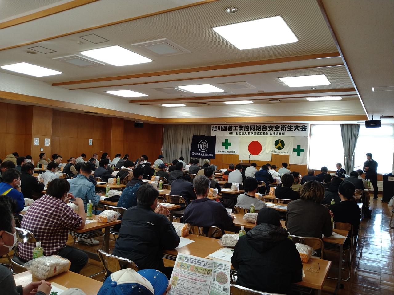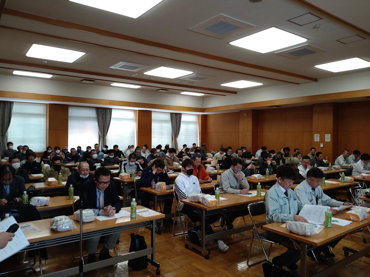 令和6年3月25日(月)旭川市工業技術センター視聴覚室にて第22回安全衛生大会を実施しました。参加者総勢92名での開催となりました。人命尊重の立場から、当組合員が集結し交通事故及び労働災害の絶滅を誓い明るい地域社会の実現の為決意を新たに確認しました。